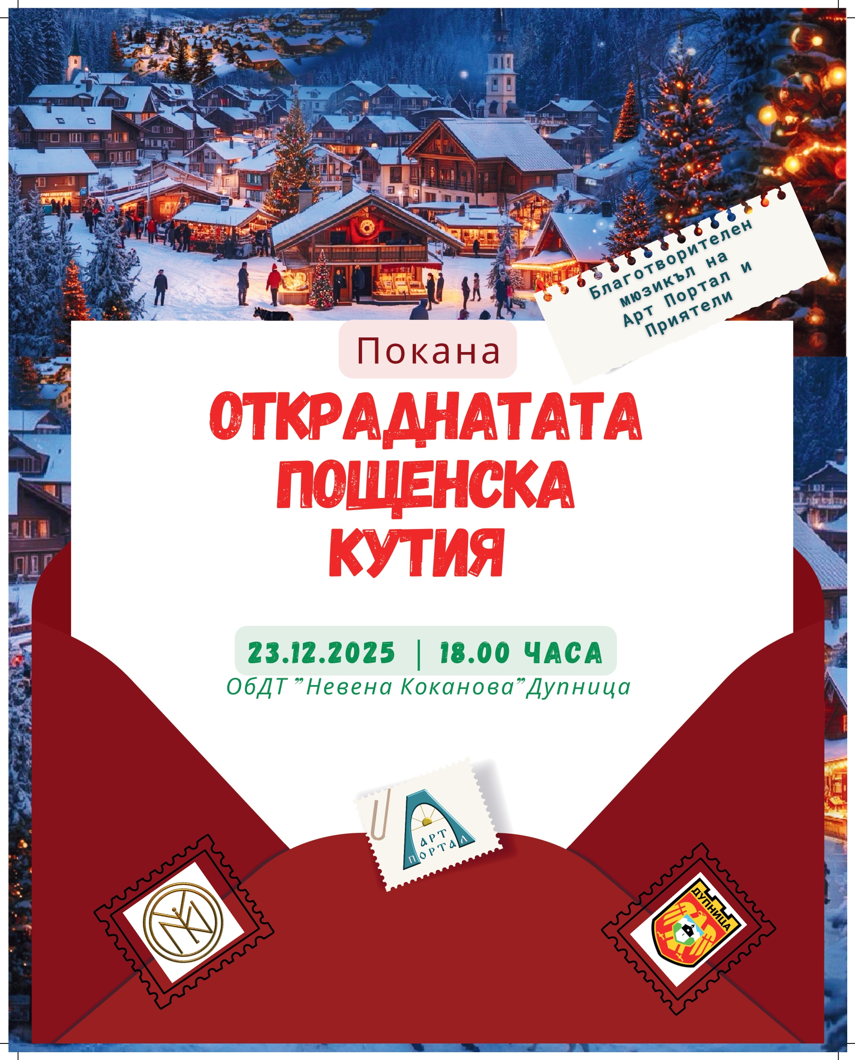 Благотворителен коледен мюзикъл на децата от Арт Портал "Откраднатата пощенска кутия".